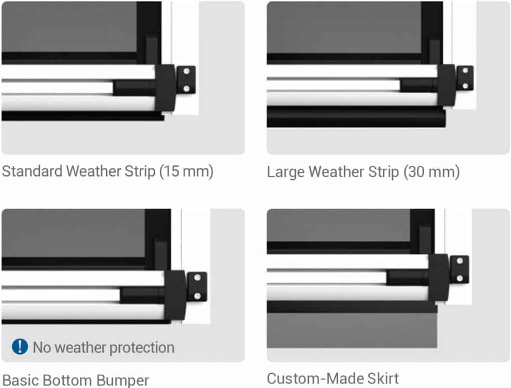 Where no gaps are present a Basic Bottom Bumper prevents surface damage but does not provide weather protection.
